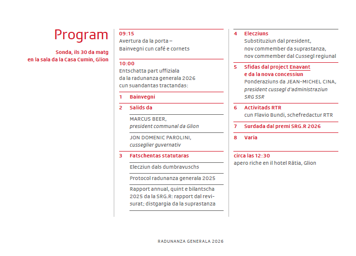 Ils 30 da matg è la radunanza generala 2026 a Glion